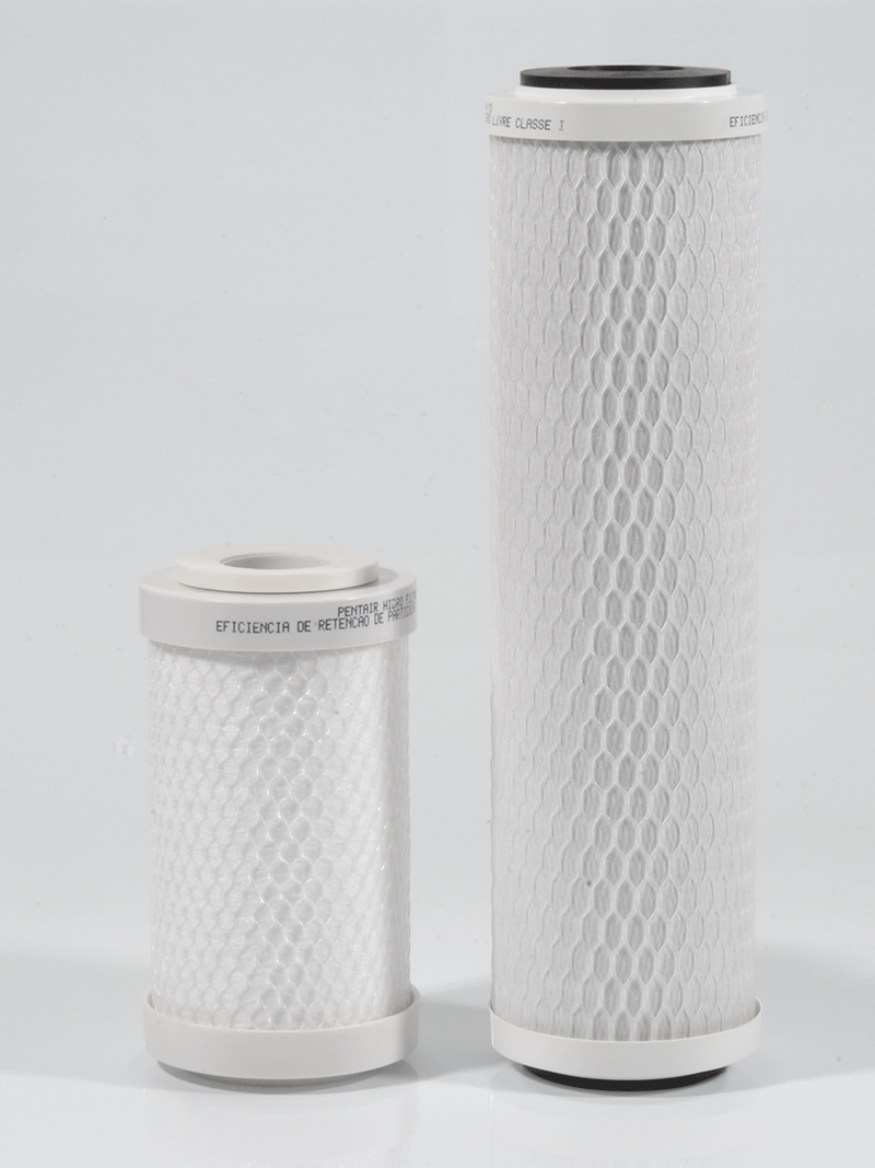 Possui exclusiva camada externa filtrante em polipropileno atóxico com graduação de 15 a 5 micra. Esta camada reduz a turbidez e retém partículas de areia, barro, limo, lodo, ferrugens residuais de tubulação e outros sedimentos, evitando a contaminação da camada interna de carvão ativado.