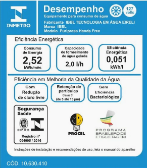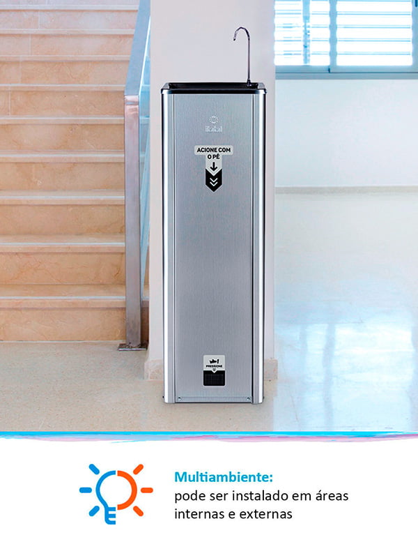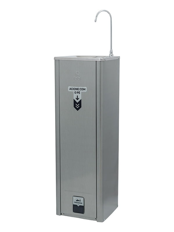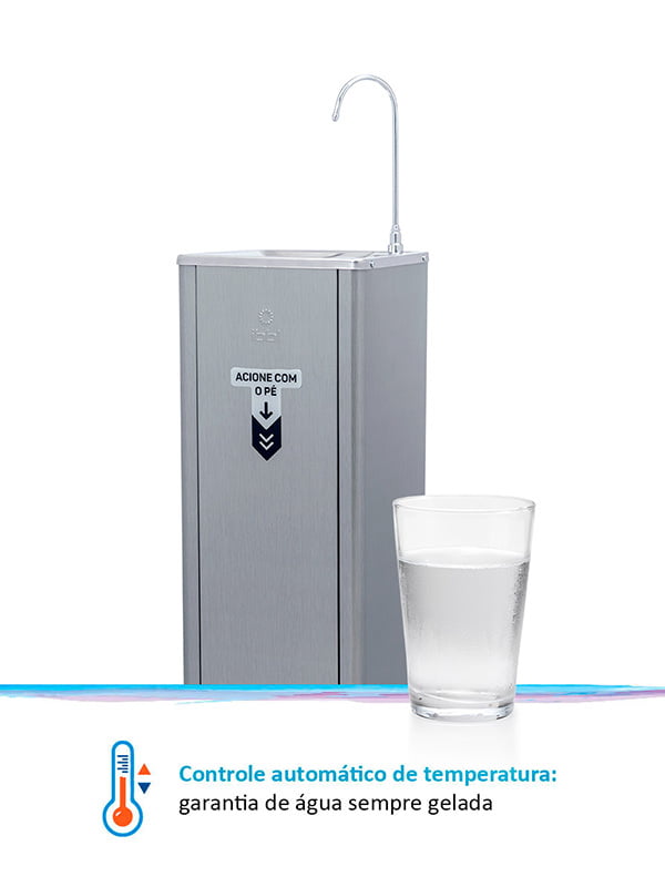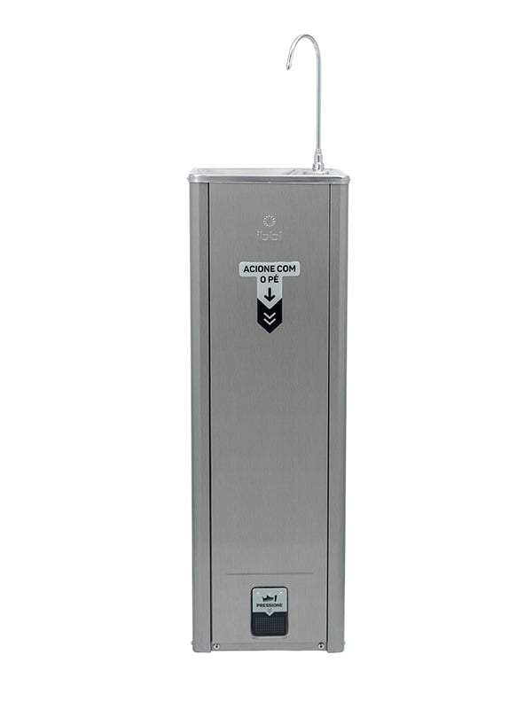 O Purificador Puripress Hands Free oferece água pura e na temperatura ideal para locais onde há grande circulação de pessoas. Ele possui design de coluna e pode ser instalado tanto em áreas internas quanto externas. Com baixo consumo de energia e muita eficiência, tem capacidade para refrigerar 2 litros de água por hora. Para garantir água pura para todos, conta com 3 etapas de purificação e máxima eficiência na redução do cloro. Com acionamento Foot Control, é possível se servir de água sem o contato das mãos, evitando assim a contaminação da superfície.